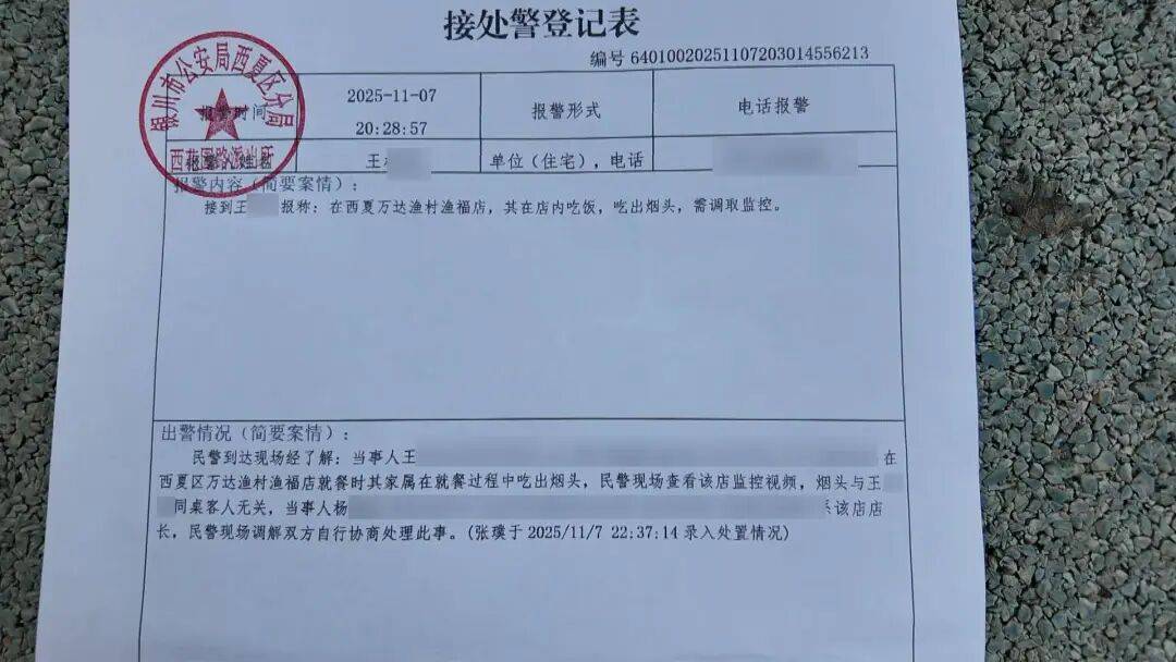 “11月7日晚,我取家人伴侣正在该店团购了一份150元的鱼暖锅,用餐临近竣事时,从鱼锅中发觉了一个。”银川市平易近刘密斯告诉记者,“我们同业四人都不抽烟。其时就联系了店家,对方暗示要调却迟迟未处置,无法之下我们报了警。”
